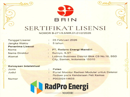 (Jakarta, 12032026) – PT. RadPro Energi Mandiri resmi menjadi pemegang lisensi teknologi Radiation Portal Monitor (RPM) setelah memperoleh sertifikat lisensi dari Badan Riset dan Inovasi Nasional.